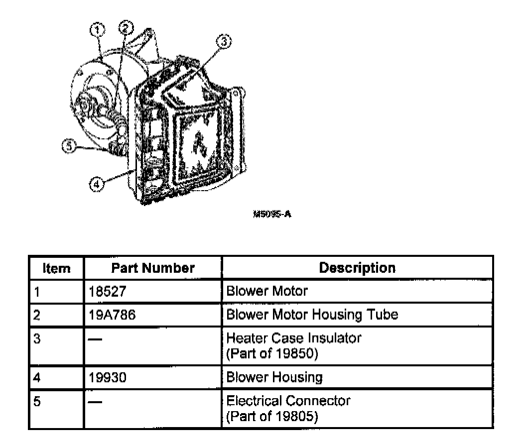4. Disconnect the blower motor housing tube (19A786) at the blower motor.