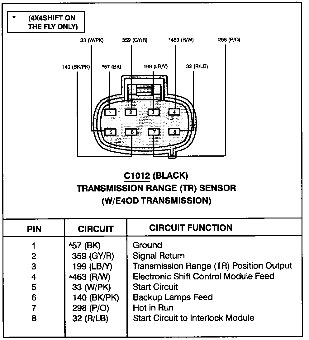 Transmission Range Sensor (With E4OD Transmission):