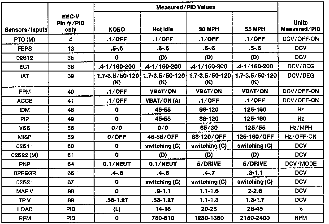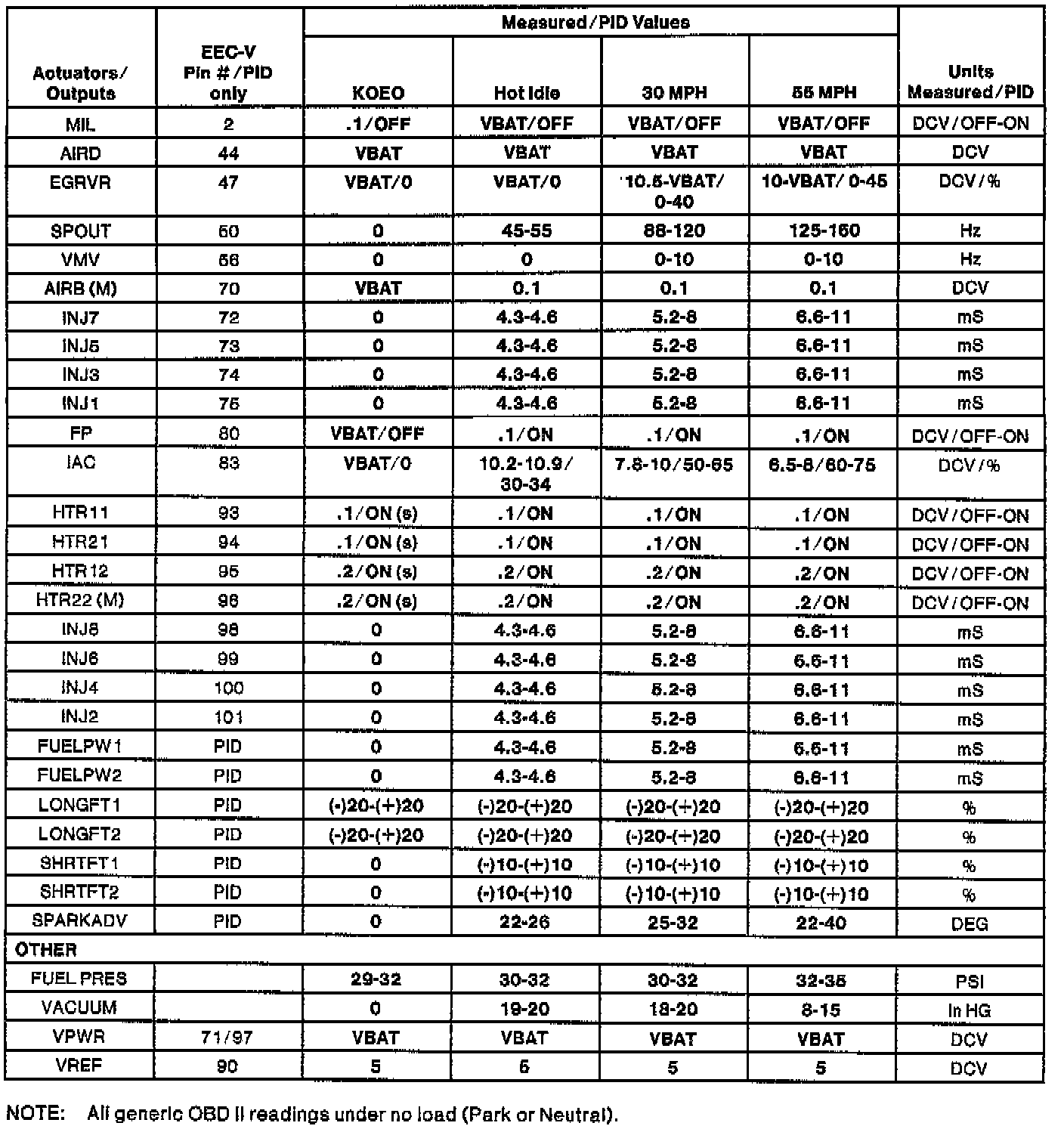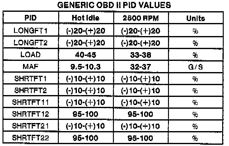 NOTE: All generic OBDII readings under no load (PARK or NEUTRAL).