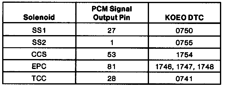 Transmission Solenoid PCM Output Pins:
