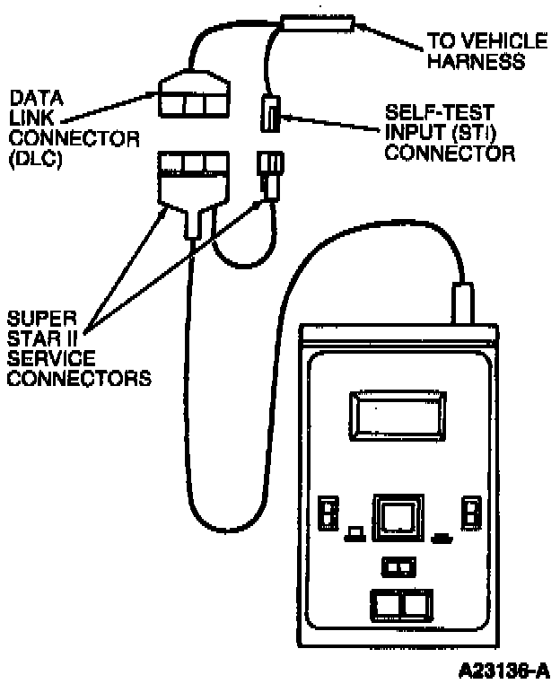 2. Connect the tester cable leads to the Data Link Connector (DLC) and Self-Test Input (STI) connector.