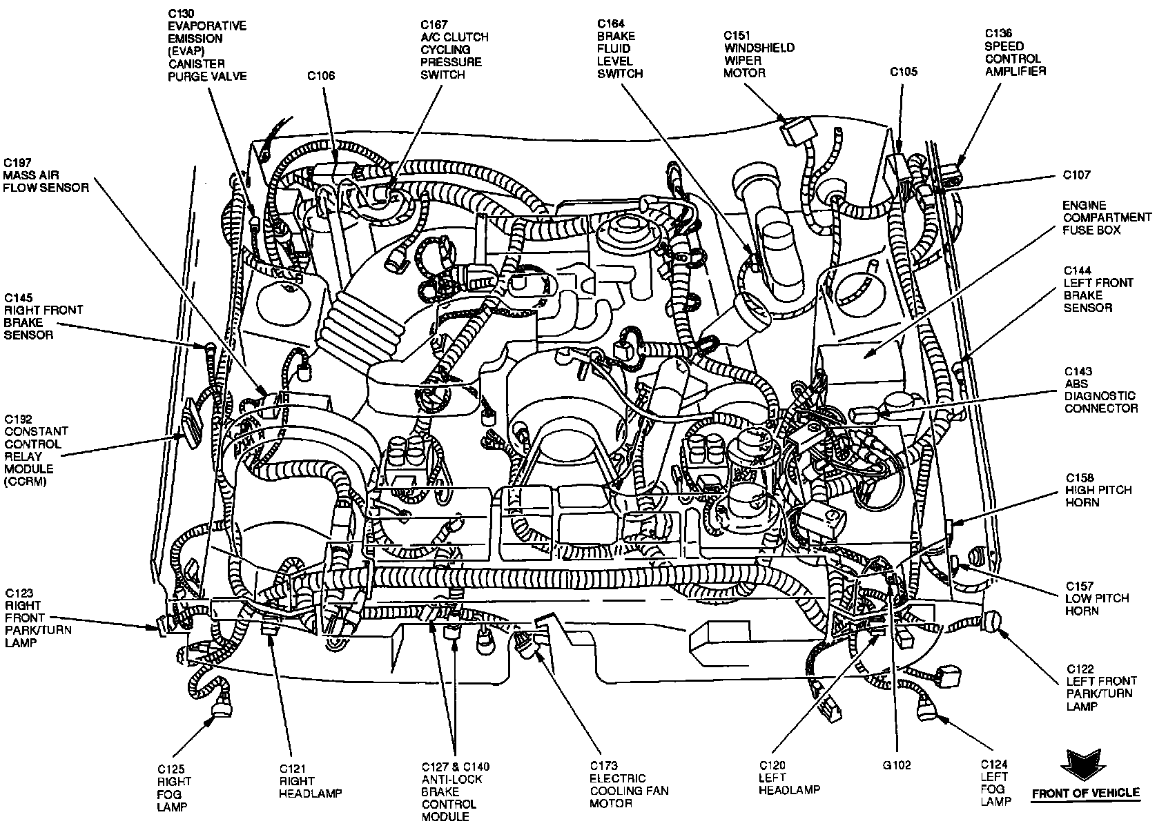 The Constant Control Relay Module is mounted on bracket, behind engine coolant reservoir.