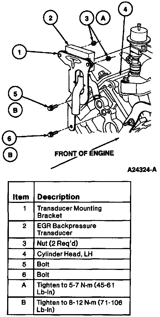 3. Tighten EGR backpressure transducer retaining nuts to 5-7 Nm (40-61 lb in).