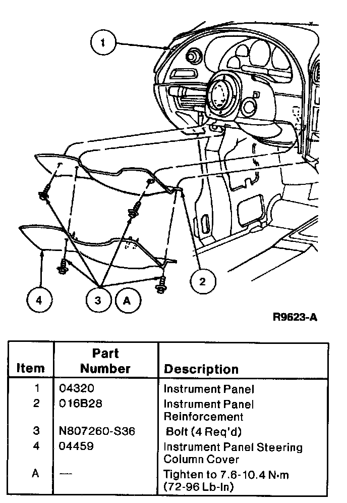 3. Remove two screws retaining instrument panel reinforcement to instrument panel and remove instrument panel reinforcement.