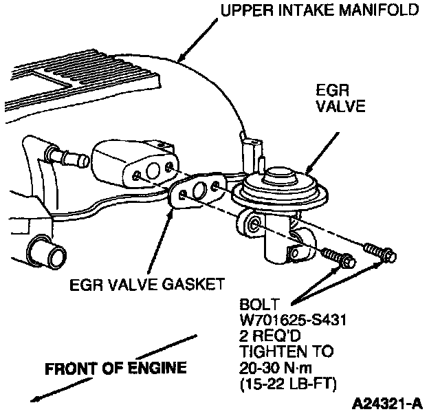 4. Install two bolts retaining EGR valve. Tighten bolt to 20-30 Nm (15-22 lb ft).