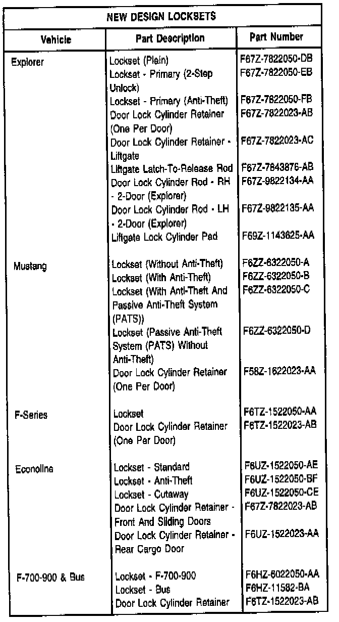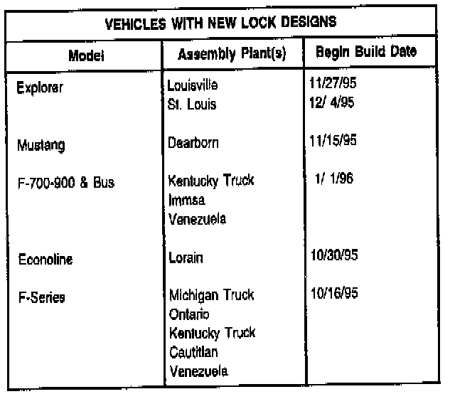 Install new design lockset if lock replacement is required for vehicles built from the dates listed in the Vehicles with New Lock Designs Chart. Refer to the following Service Procedure for details.