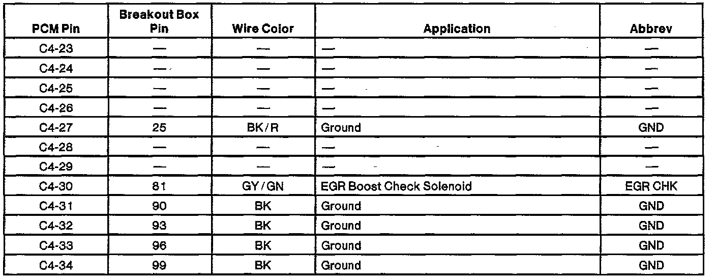 Powertrain Control Module (PCM) Connector Pin Usage: