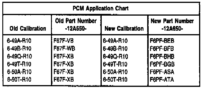 2. Reprogram the PCM. Refer to the PCM Application Chart for the correct calibration.