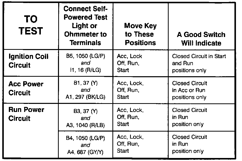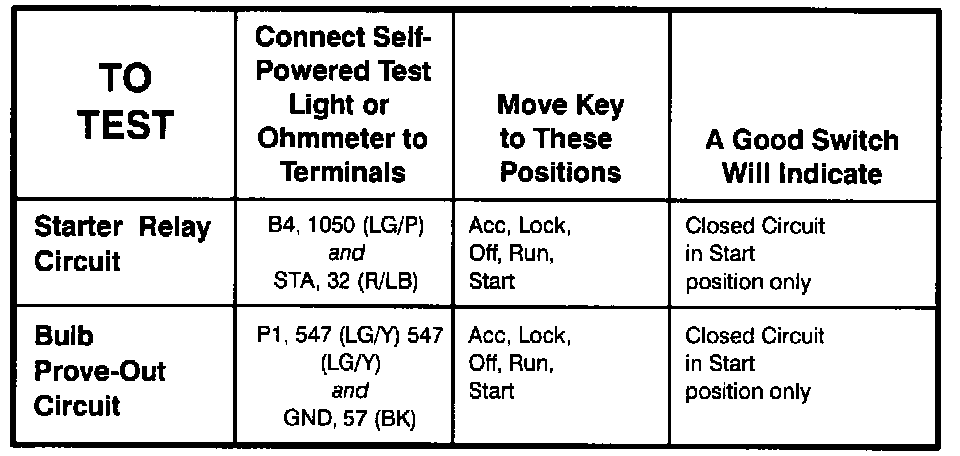 Ignition Switch - Component Testing Procedure (Part 2 Of 2):