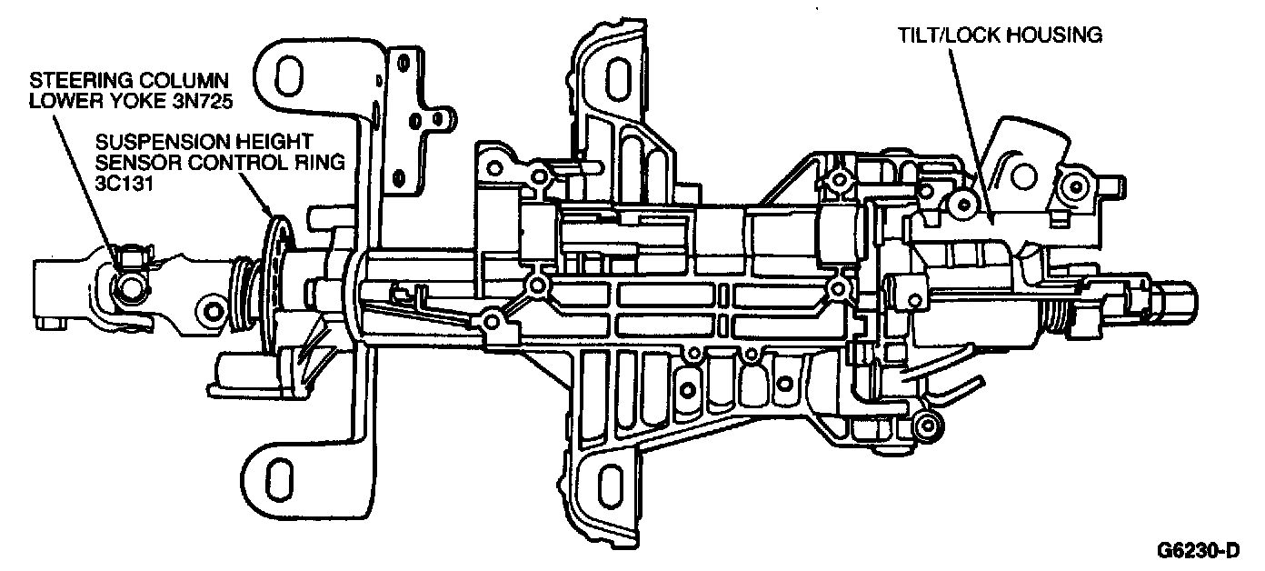 4. Remove steering column lower yoke, steering column upper bearing spring, suspension height sensor control ring and steering column bearing tolerance ring.