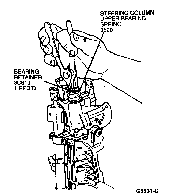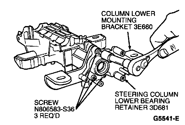 18. Remove three screws retaining steering column lower bearing retainer and remove steering column bearing from steering column lower bearing retainer.