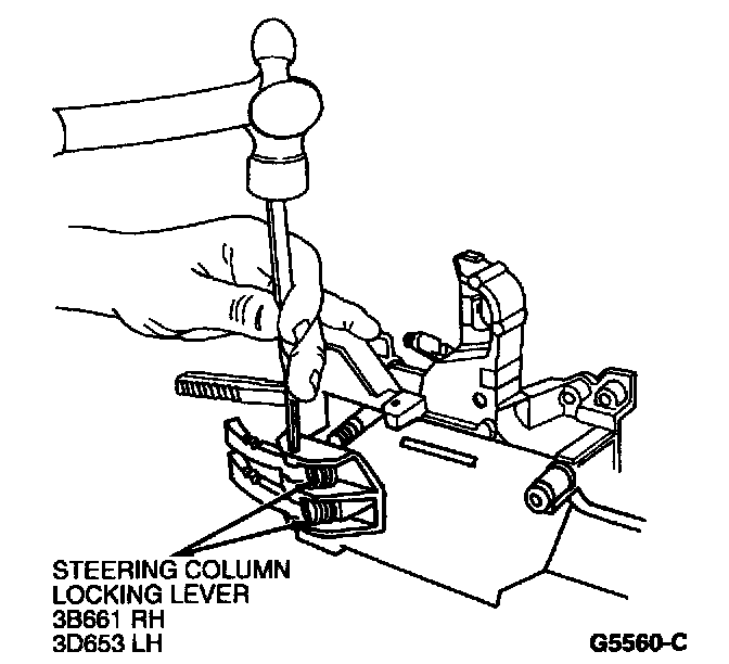 20. Remove steering column lock actuator lever pin using a drift. Remove steering column locking lever (RH) steering column lock left hand lever and steering column locking lever springs.