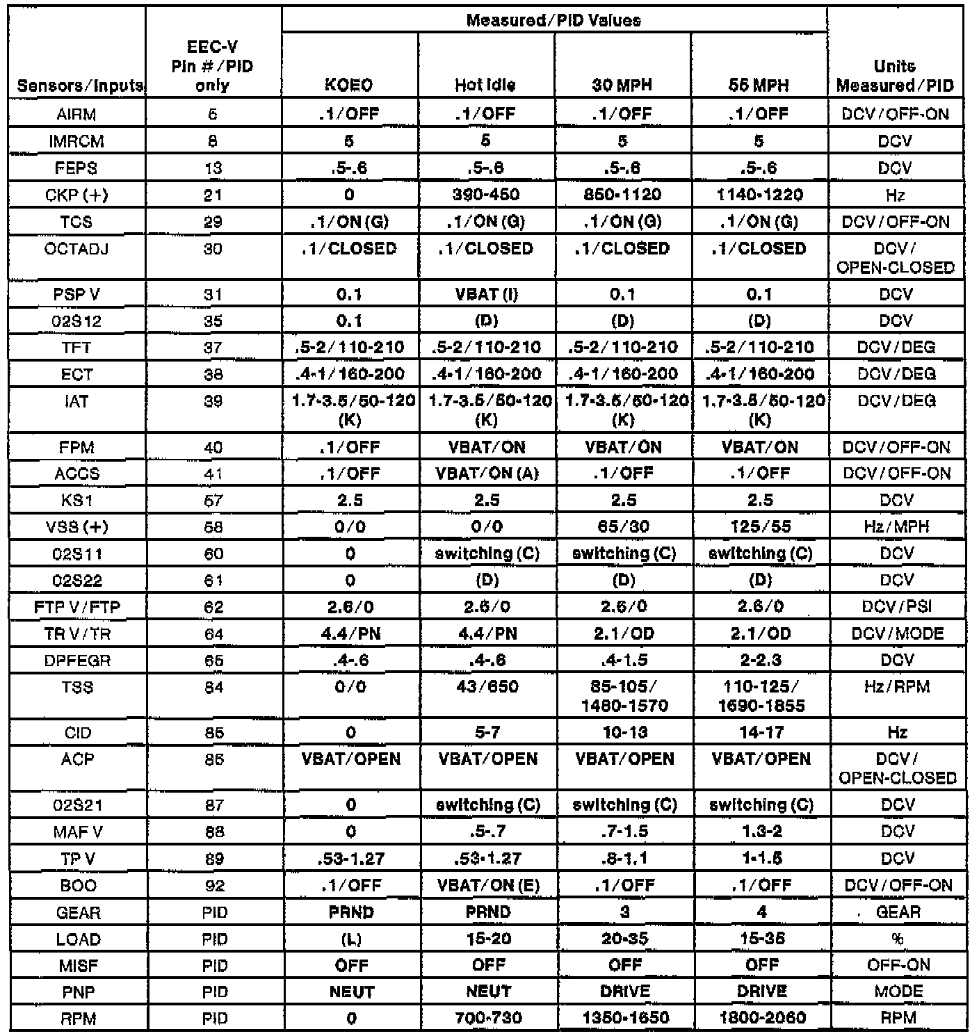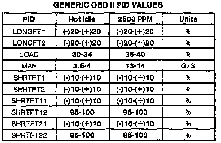 NOTE: All generic OBDII readings under no load (PARK or NEUTRAL).