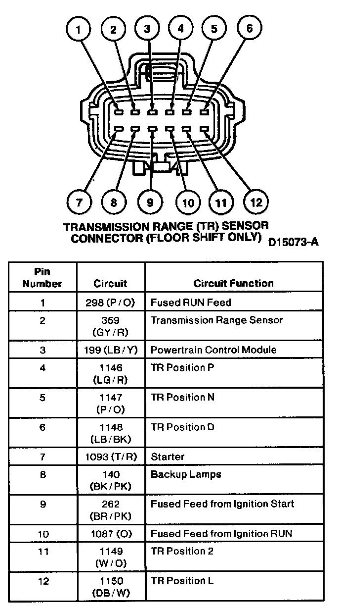 Transmission Range (TR) Sensor Connector (Floor Shift Only):