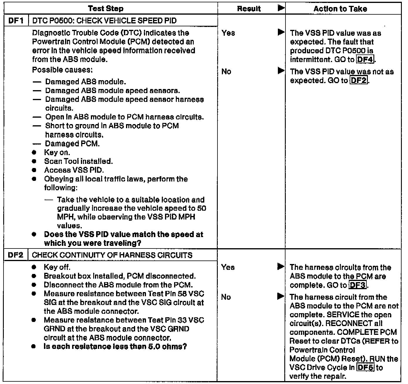 DF - Vehicle Speed Circuit Check