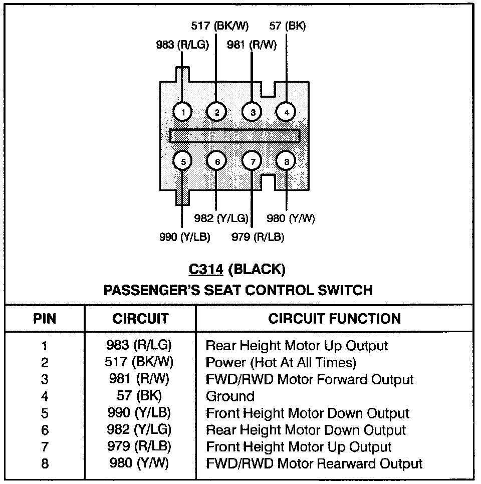 Passenger's Seat Control Switch:
