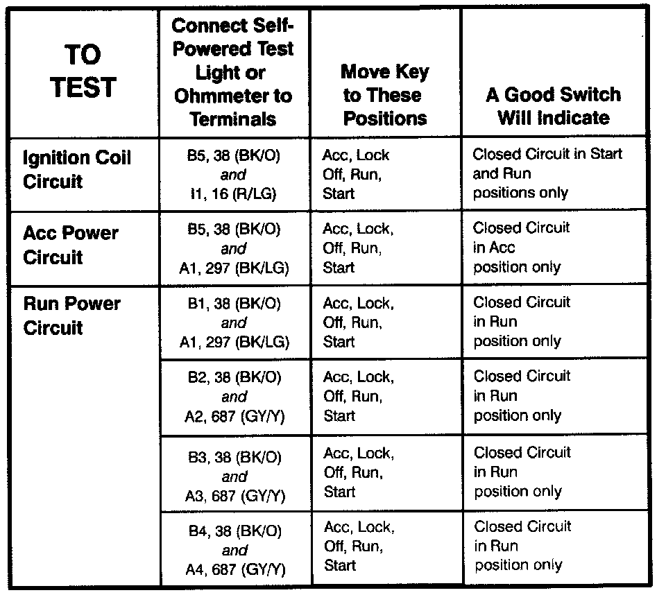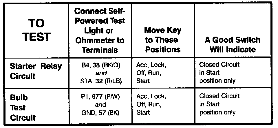 Ignition Switch - Component Testing Procedure (Part 2 Of 2):
