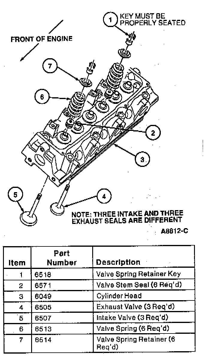 NOTE: Intake valve stem seals have a silver band around them while the exhaust valve stem seals have a red band.