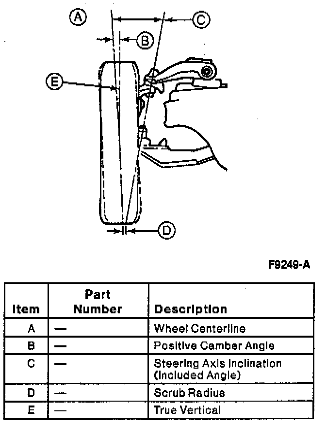 ^ Steering axis inclination (included angle) is the line to the axle drawn through the spindle ball joint when viewed from the front.