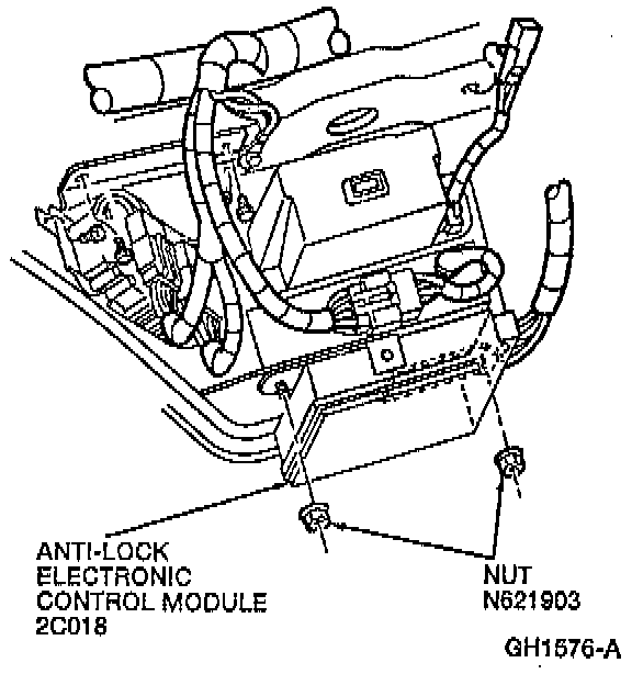 2. Remove the two nuts that retain the anti-lock electronic control module to the instrument panel anti-shake brace.
