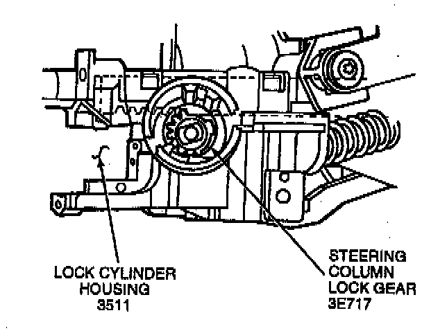 1. Position steering column lock gear in base of lock cylinder in the same position as that noted during removal procedure. The position of steering column lock gear is correct if last tooth on drive gear is meshed with last tooth on rack.