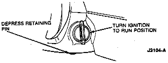 3. Place a 3.17 mm (1/8 inch) diameter wire pin or small drift punch in hole in trim shroud under lock cylinder. Depress retaining pin while pulling out on lock cylinder to remove it from column housing.