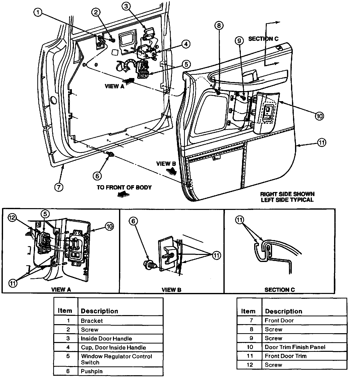 NOTE: The window regulator control switches are located on the front door trim panel.REMOVAL