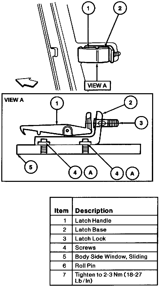 To install, reverse the removal procedure. Tighten latch base to sliding body side window attaching screws to 2-3 Nm (18-27 Lb-In).