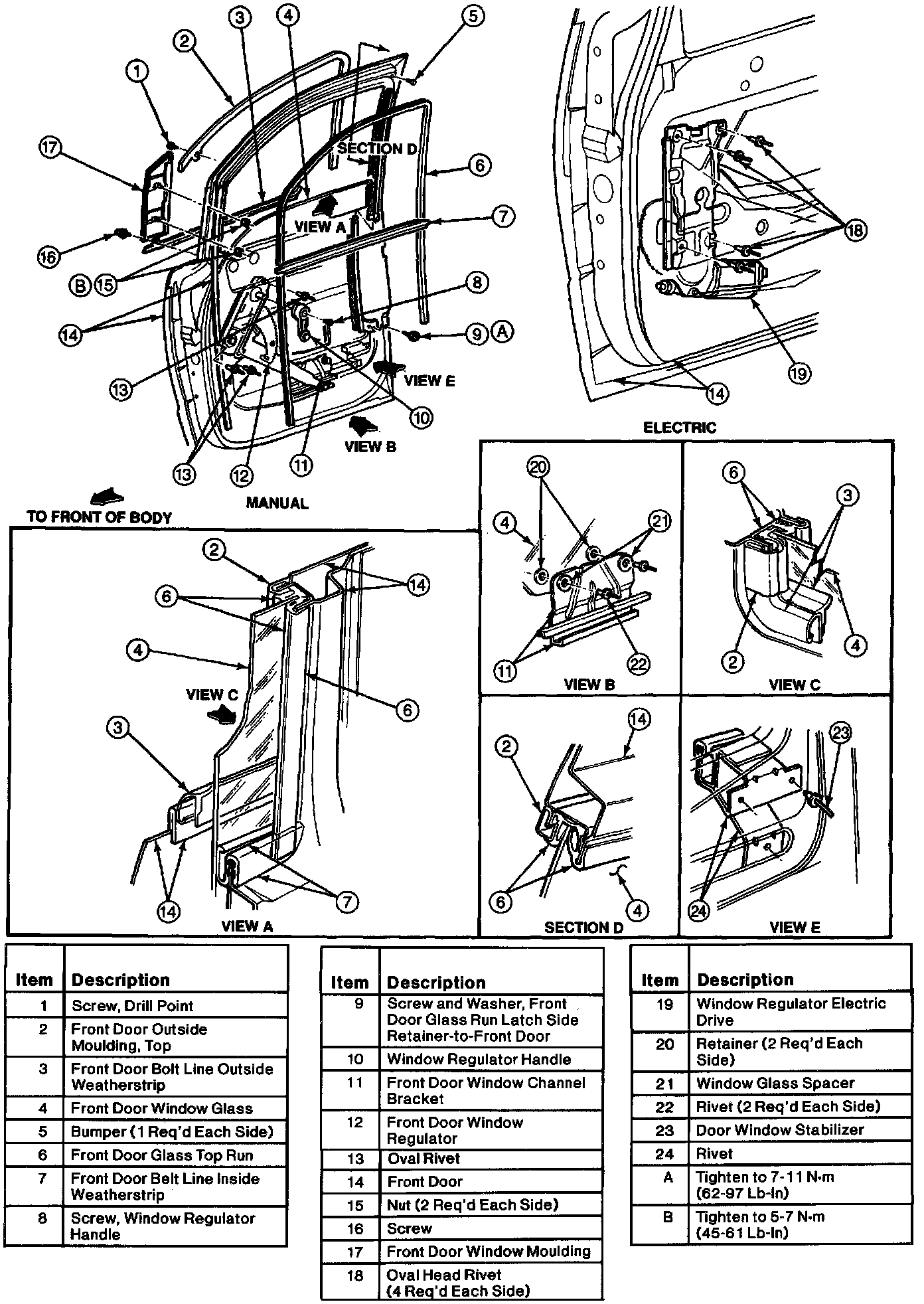 7. Tighten the front door glass run latch side retainer bolt to 7-11 Nm (62-92 Lb-In).