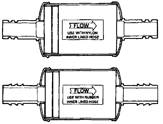 8. Obtain the proper service kit for the vehicle being serviced. Filter kits with the service part number suffix "C" are to be used on vehicles with a nylon lined suction hose. Filter kits with the service part number suffix "D" are for vehicles with a rubber lined suction hose. The label on the filter shows with which hose it is to be used.