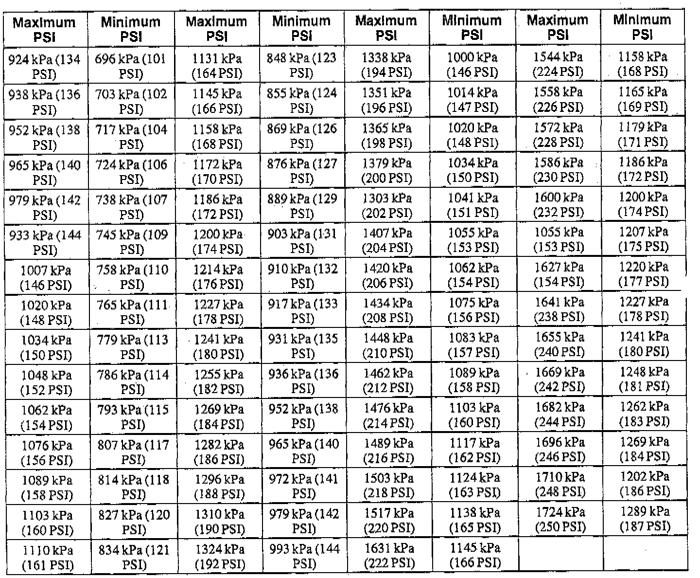 If the highest cylinder reads 924 kPa (134 psi) and the lowest cylinder reads 696 kPa (101 psi), then the 696 kPa (101 psi) reading is within 75% of the 924 kPa (134 psi) reading. See compression chart for maximum and minimum compression readings.