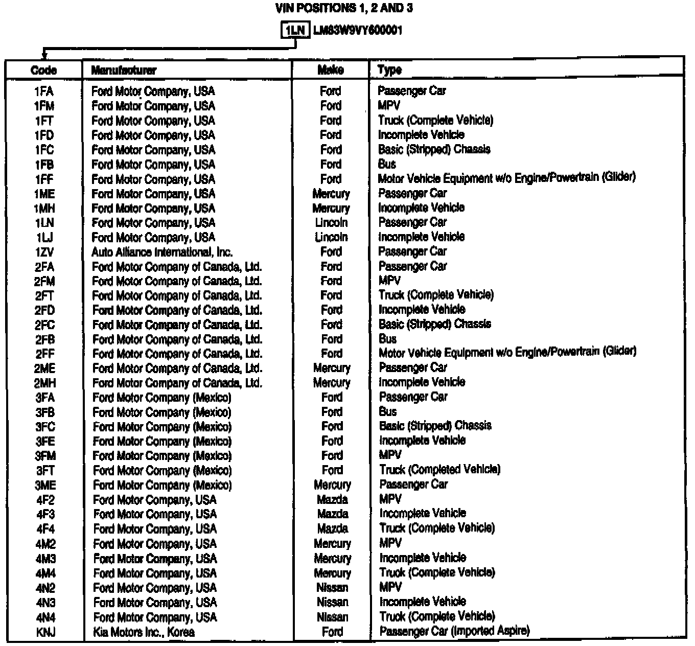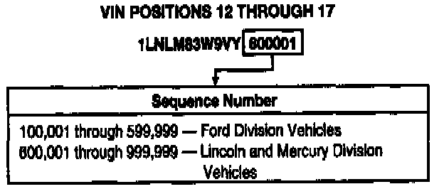 - 600,001 through 999,999: Lincoln/Mercury Division vehicles