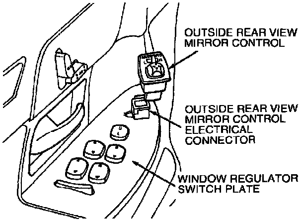 2. Disconnect electrical connector from outside rear view mirror control.
