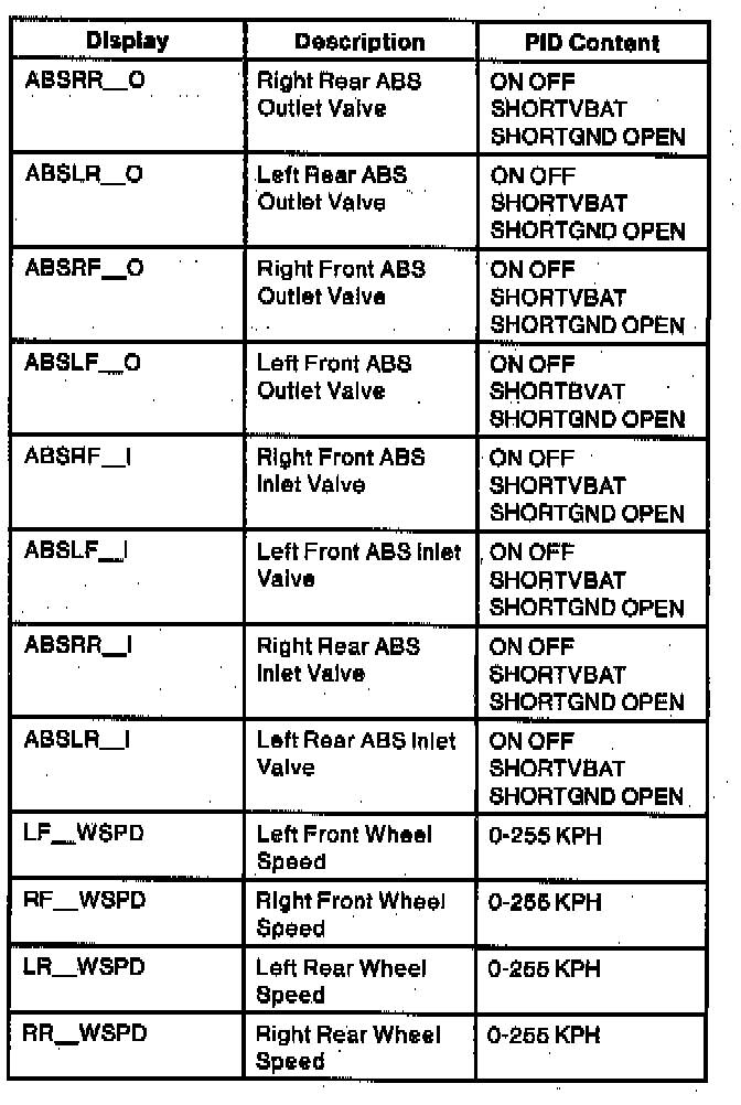 ABS Control Module PID Index (Part 2 Of 2):