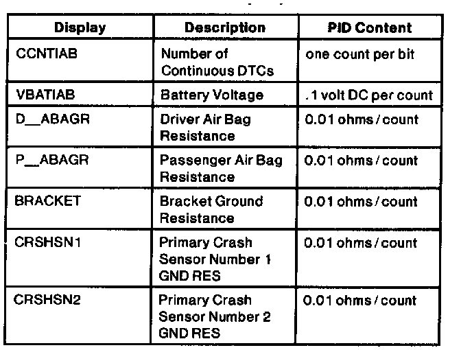 Airbag Diagnostic Monitor Parameter Identification (PID) Index