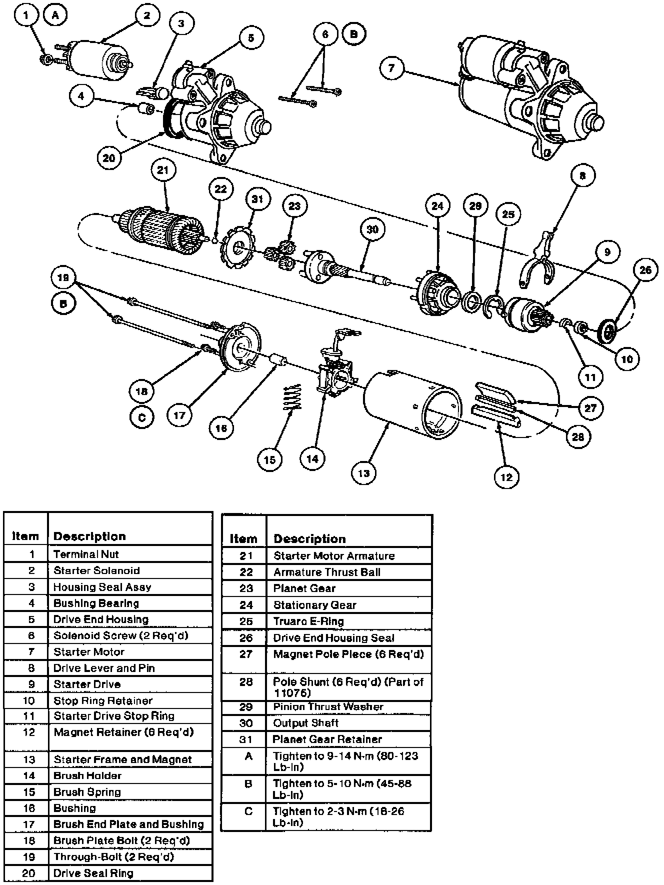 NOTE: Although disassembly and service procedures are provided for the starter motor, it is recommended that the starter motor be returned to Ford Parts Return Center for analysis and review.DISASSEMBLY