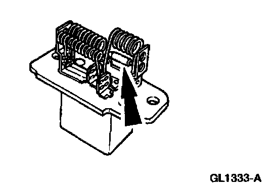 The thermal limiter is integral to the heater blower motor switch resistor and serves as a temperature protection device. The thermal limiter is wired in series with the heater blower motor switch resistor coils and opens when the resistor coils reach approximately 300°F (121°C). When the thermal limiter opens, the blower motor will only operate when the heater blower motor switch is set to HIGH speed. The thermal limiter does not reset once opened. The heater blower motor switch resistor must then be replaced.