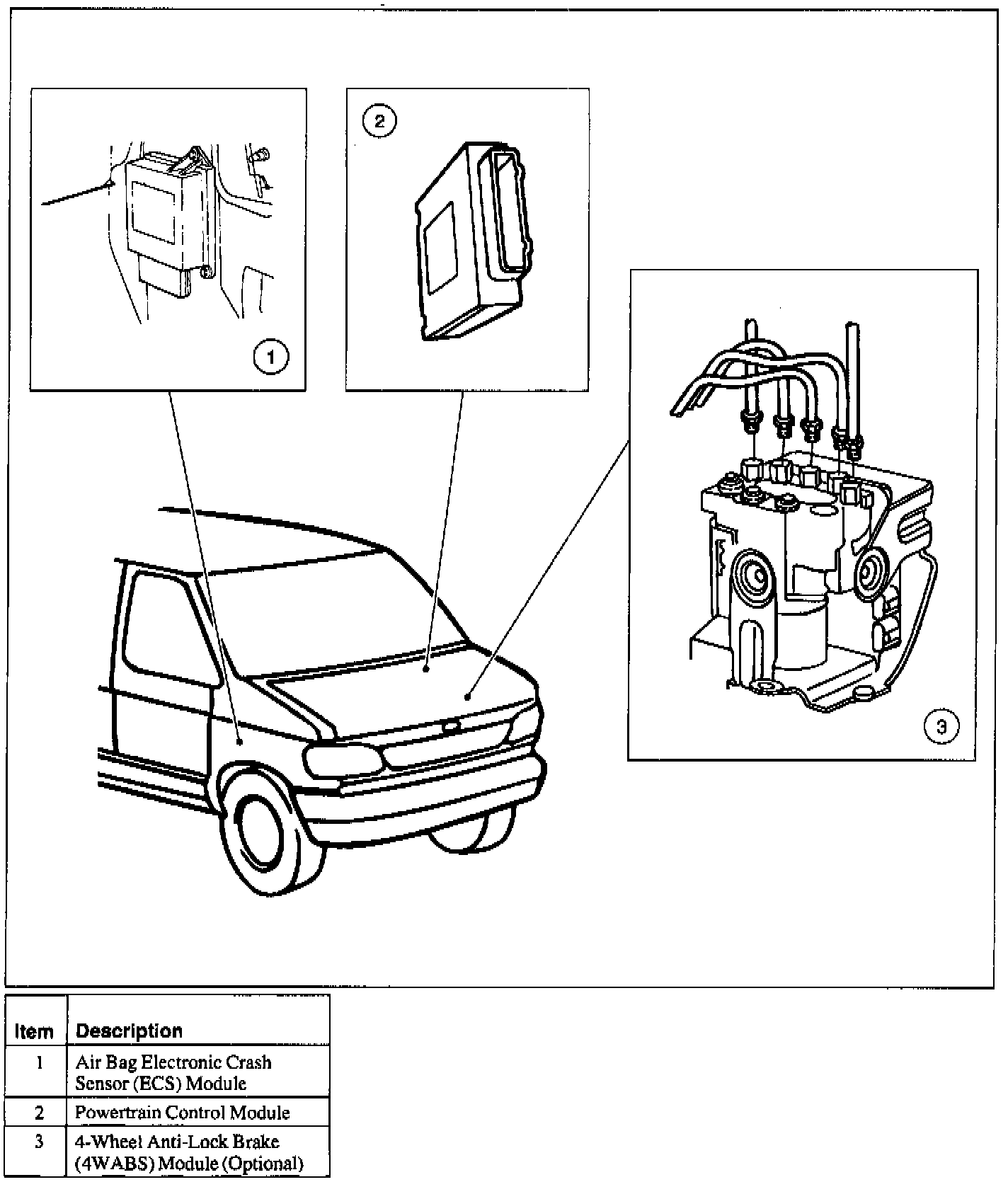 - The ECS module is on the ISO 9141 Link network. The ECS controls the deployment of the air bags based on sensor input.
