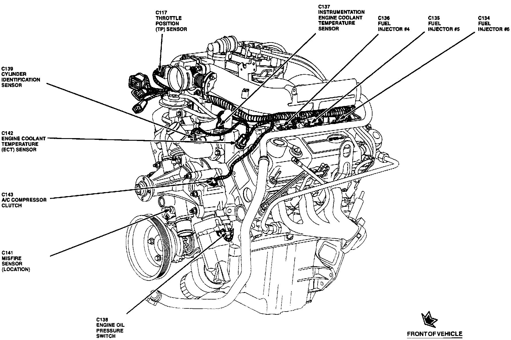 The Throttle Position Sensor is located on the top of engine, near air intake.