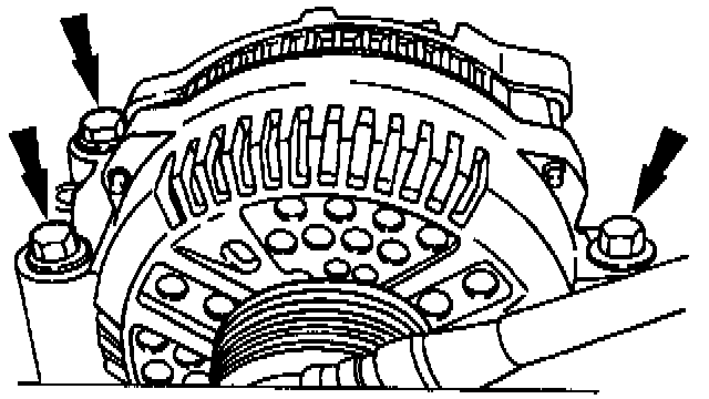 6. Remove the three generator mounting bolts and lift out the generator.