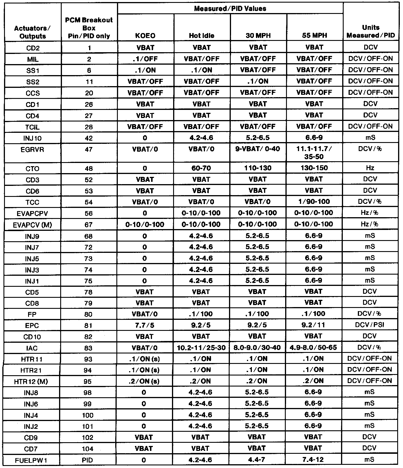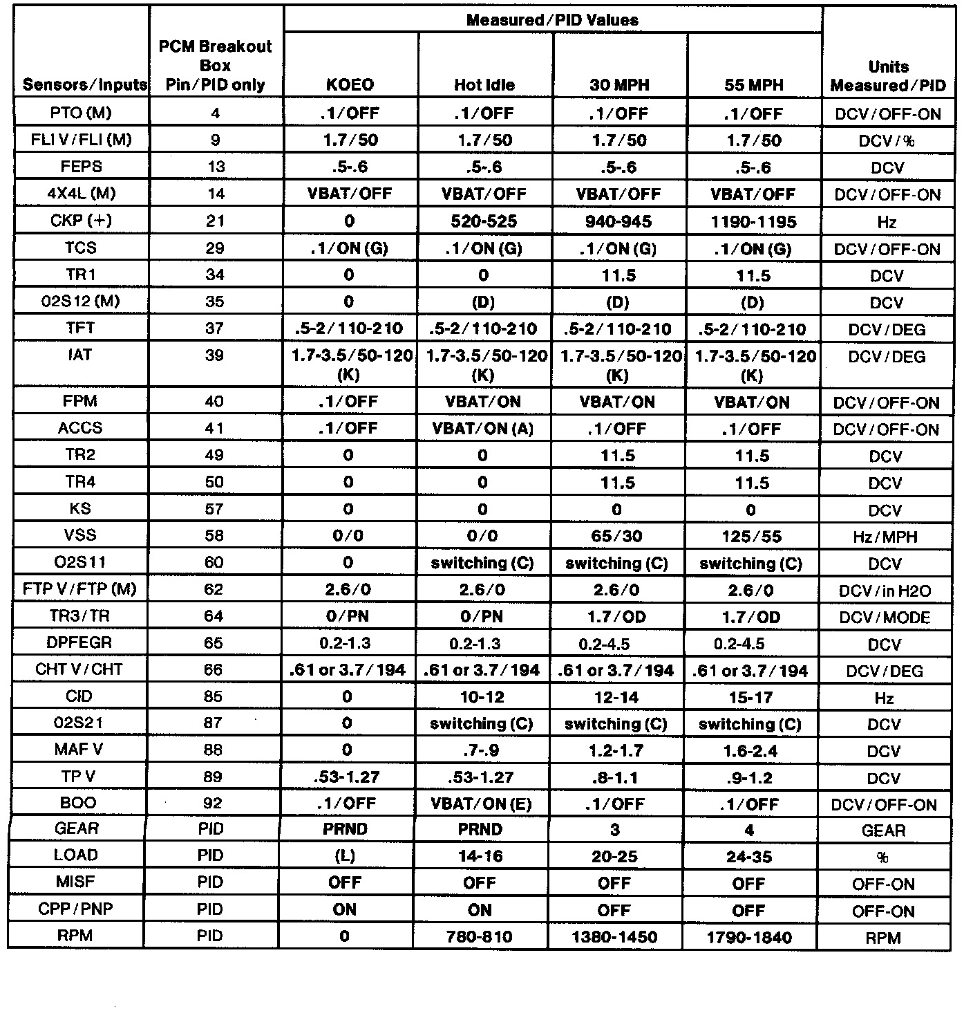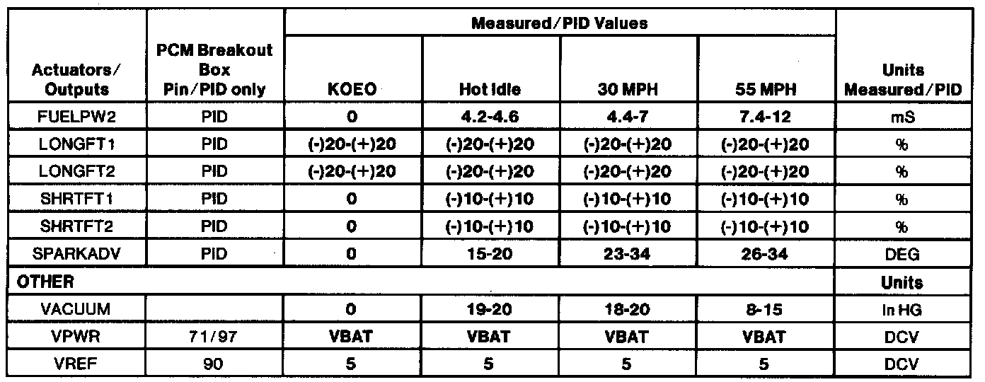 (H.) Values shown are commanded by the PCM and may not be actual.