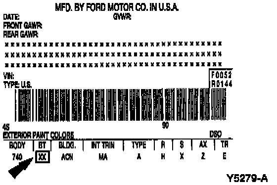 The Vehicle Certification (VC) label contains the manufacturer name, the month and year of manufacture, the certification statement, and the VIN. It also includes Gross Vehicle Weight Ratings (GVWR). The VC label is located on the left-hand door jamb and on several body parts.