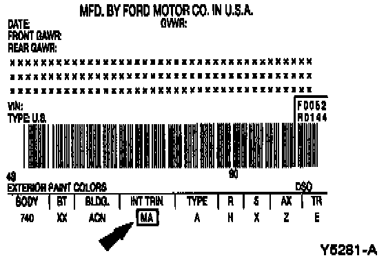 The interior trim codes for Tracer are: