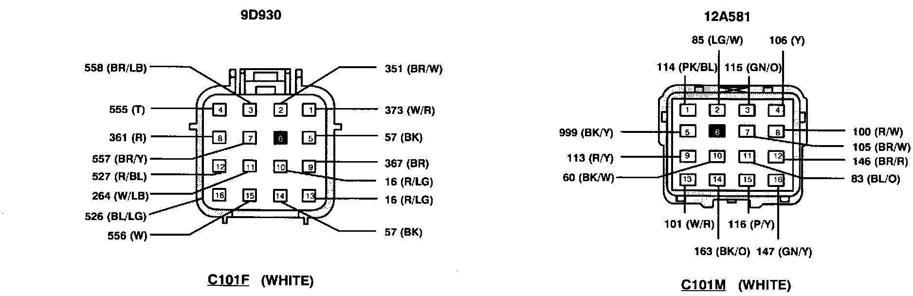 Connector: C101, Color = 'White', Terminals= '16'
