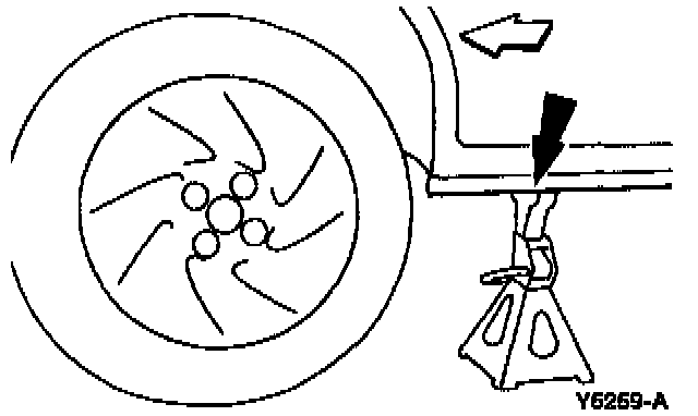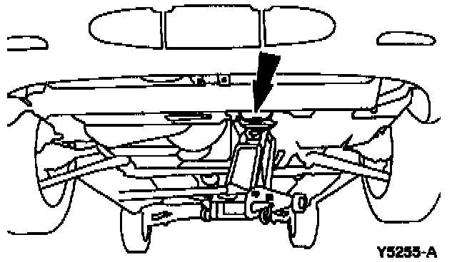 The rear jacking point is located at the rear floor cross member. Raise the vehicle using 1 1/2 Ton Floor Jack.