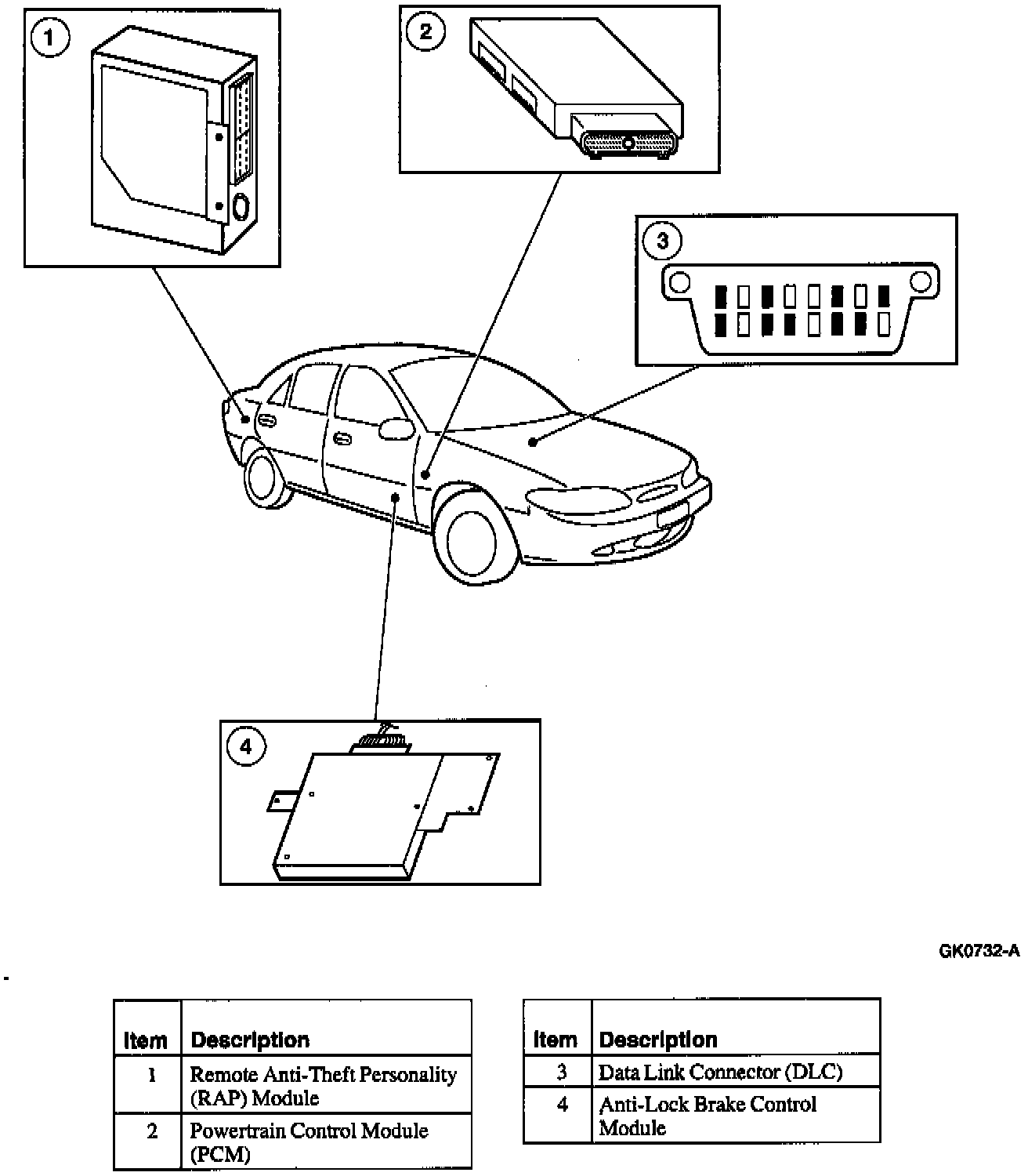 The Remote Anti-Theft Personality (RAP) module is located in the luggage compartment, behind the right rear quarter trim panel for sedans and behind the left rear quarter trim panel for wagons. Vehicle features that are affected by the RAP module include: