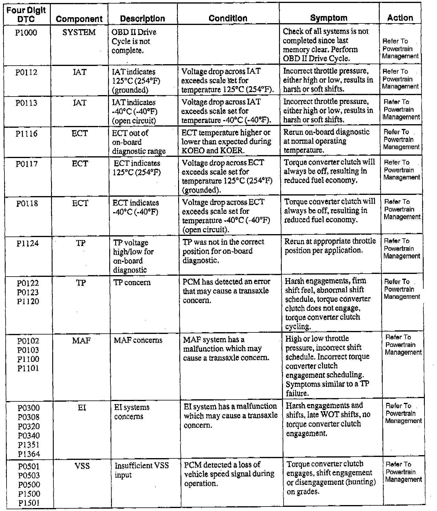 NOTE: When a DTC action contains a reference to Powertrain Management, go to the DTC index under Powertrain Management/Computers and Control Systems/System Diagnosis and follow the pinpoint test instructions for that DTC. Testing and Inspection