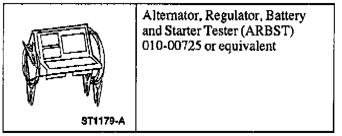 1. Before performing this test, check the battery to determine its state of charge. Perform a load test of the battery using Alternator, Regulator, Battery and Starter Tester (ARBST) 010-00725 or equivalent. Load Test