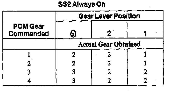 Shift Solenoid Operation Chart