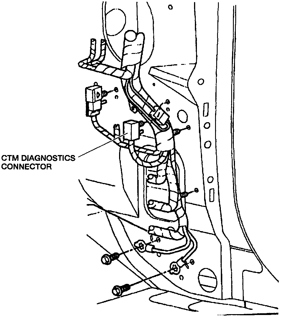 The diagnostic test mode is entered by shorting together the pins of the diagnostic connector located behind the right side kick panel.